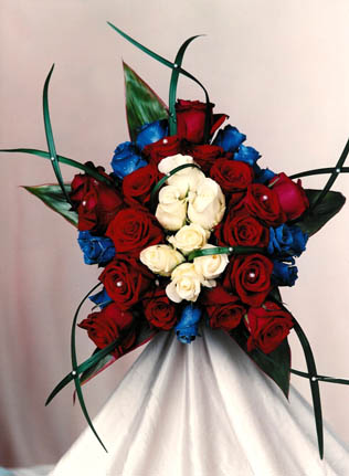 nå men buket bliver noget i retning af det billede. Dog uden hvide og blå roser, men en anden lille blå blomst i stedet. måske forglemmigej hvis hun kan få det så tidligt. og så skal der heller ikke være det græslignende noget på. Jeg er helt vild med formen. og faktisk da vi snakkede med hende havde jeg taget en masse inspirationsbilleder med og jeg var kommet lidt før end H2B og havde udpeget den som en af yndlings. traditionen siger jo bare at det er manden der skal bestemme brudebuketten så da han kom fik han lov at se inspirationsbillederne også og gæt hvilken buket han også pegede på. :cheerleader3::cheerleader3: han er blevet opdraget godt. :thumbsupsmileyanim: han sagde endda det samme jeg havde sagt med at der ikke skulle være hvide roser. Så han fik lov at bestemme buketten uden protester fra mig. :) Jeg glæder mig så meget til at se den i virkeligheden.