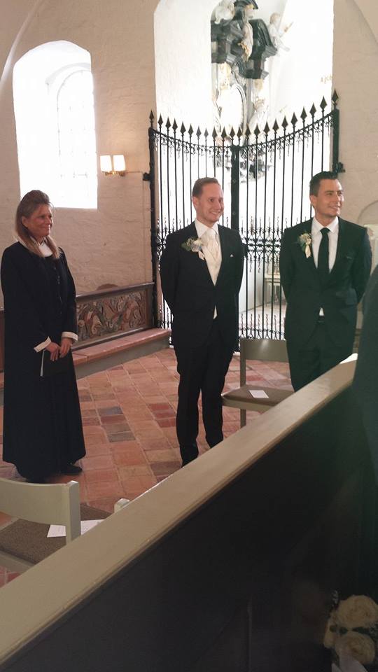 Og dér står min H2B og smiler og vi kan ikke andet end smile kæmpe stort til hinanden. Da jeg kommer op til ham, får ham lige et kys og min far får givet forloveren (som også er hans papsøn/min papbror) et kram imens og så sætter vi os.