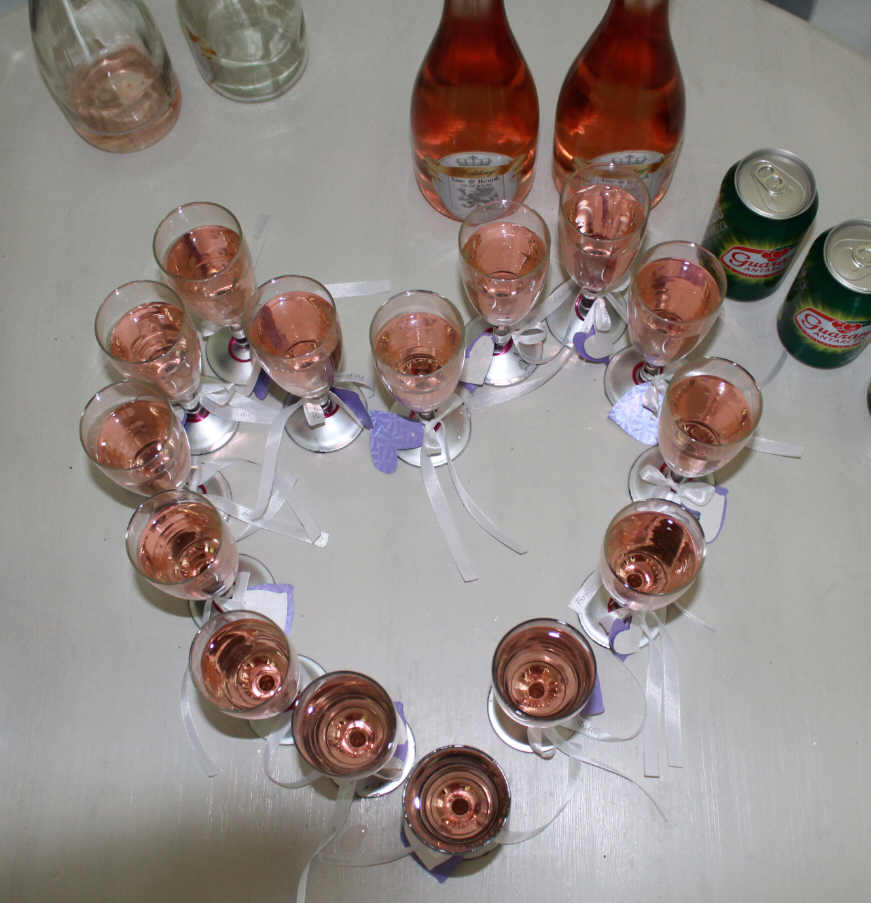 Her er et par snaps af vores vinflasker med vores etiketter, samt et par af vores vandflasker. Det tog utroligt lang tid at få ordnet flaskerne for på en ene typer rødvin sad etiketterne bare FAST! flaskerne røg i vand først, så fik de olie og i vand igen og nu er næste skridt til de sidste 4 flasker at de skal have sprit. Jeg er ved at få pip af dem, og har komplet opslidte hænder efter al den roden med olie,vand og sprit. Pyyh godt der kun er 4 tilbage. :pokey: