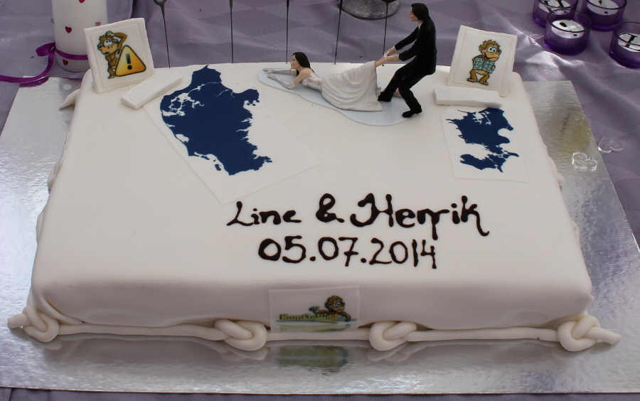 hehe.. Naah så går jeg jo glip af det sjove på kagen. Det var i øvrigt farvet marcipan, for kan kan slet ikke med fondant. Det var kun knuderne som var fondant for bageren mente ikke han kunne forme knuderne i andet. Husk at tænke over hvad I vi på jeres kage. Hvis ikke jeg absolut ville fortælle en historie på kagen, så havde jeg valgt en kæmpe jordbær kage i stedet haha.. :lol: